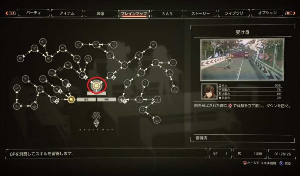 レベルが上がったら「受け身」を覚えると、ダウンされずに済むので便利。強化系のスキルを取りたくなるけど、個人的には最初に取るスキルは「受け身」一択です。