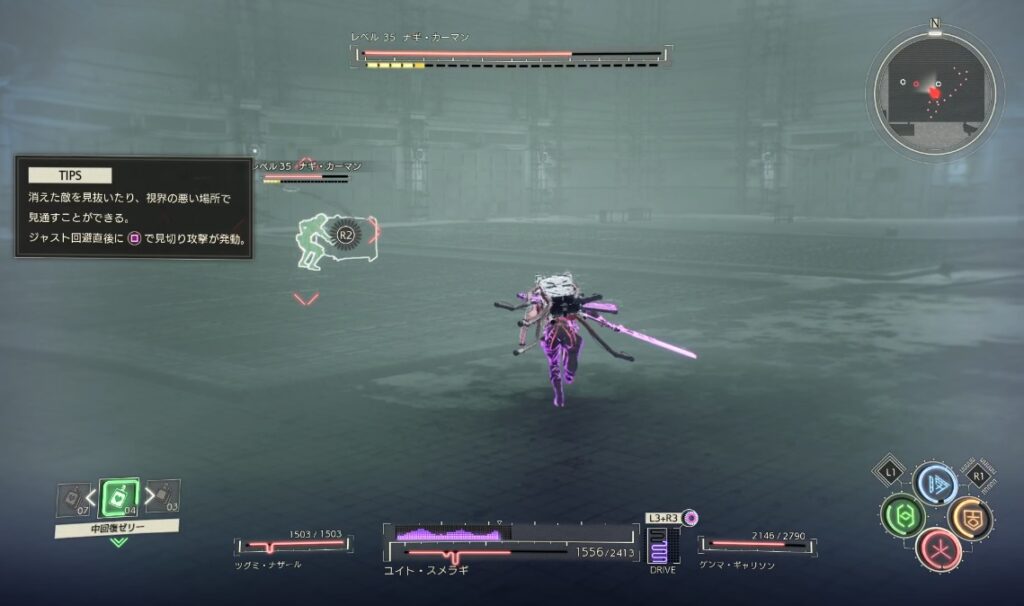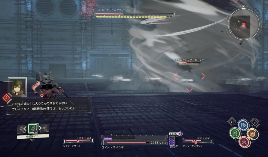 姿が見えない敵が多数出てくるので、ツグミのSAS「透視」で対応。中ボスクラスの敵と一緒に出てくるとストレスマッハなので、なるべく早めに倒しておきたい。