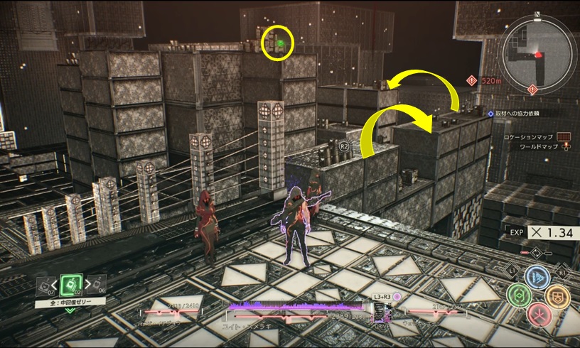 何か所か高い場所に物資反応があるので、それの取り方を解説。