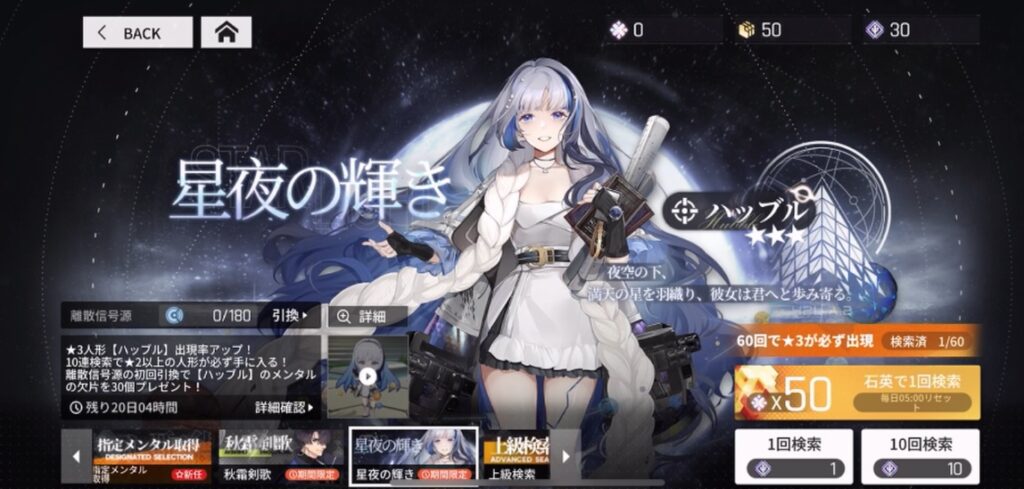 ピックアップに指定されている秋とハッブルの好きな方を回しましょう。ネットでの情報ではハッブルが範囲火力があって使いやすいようです。24日18時時点ではここで40連できました。 - リセマラを続行する場合はアプリを削除(アンインストール)し、インストールからやり直し。