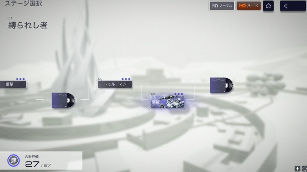 ゲームを進め1-9までクリアするとレゾナンス(ガチャ)が解放されます。最初に1回だけ引けるチュートリアルガチャはアカシアが確定だと思うので、そこまでストーリーを進めましょう。