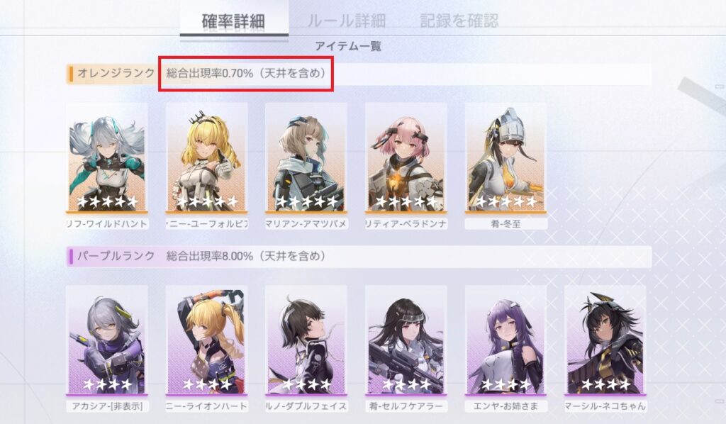 しかし、最高レアのオレンジランクの排出率は0.70%です…。