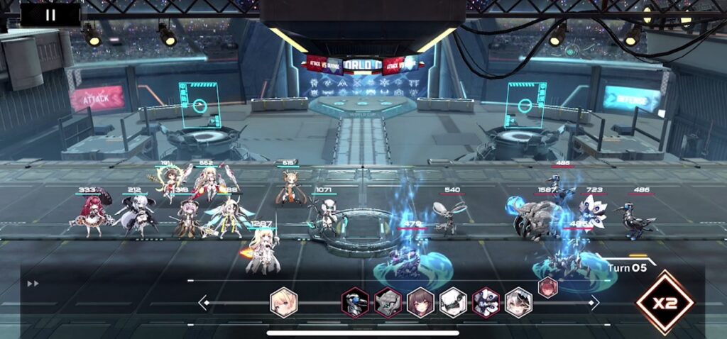 本作のバトルはライン上にキャラを並べ自動で戦闘を行うもの。キャラの行動はオートで行われ、勝敗は配置とキャラの育成状況で決まる方式です。