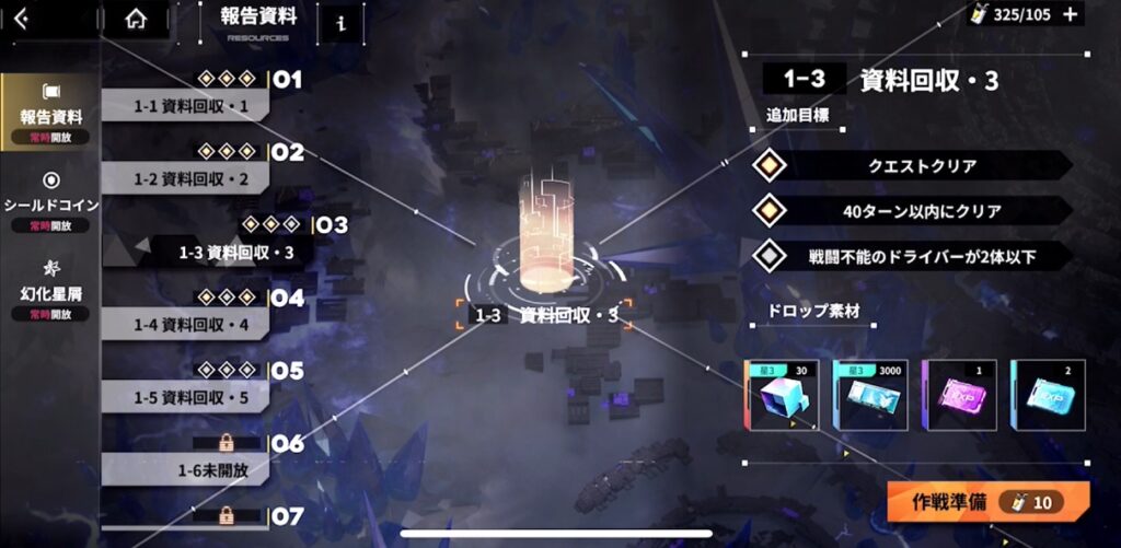 キャラの経験値素材・レベル上限解放の突破素材・ゲーム内通貨などなどは、スタミナを消費して専用のクエストを周回するいつものソシャゲのやつ。