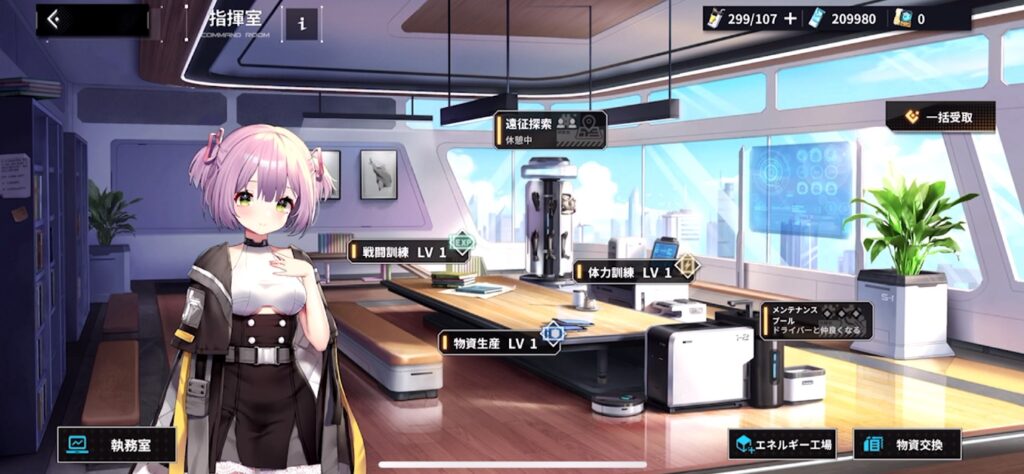 指揮室は経過時間に応じて素材が入手できる放置要素