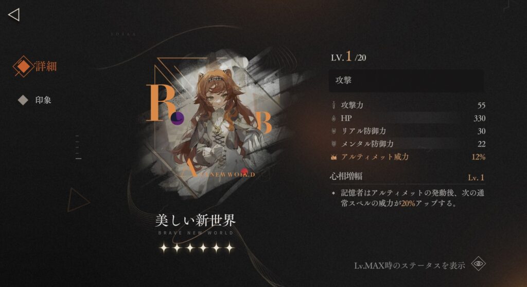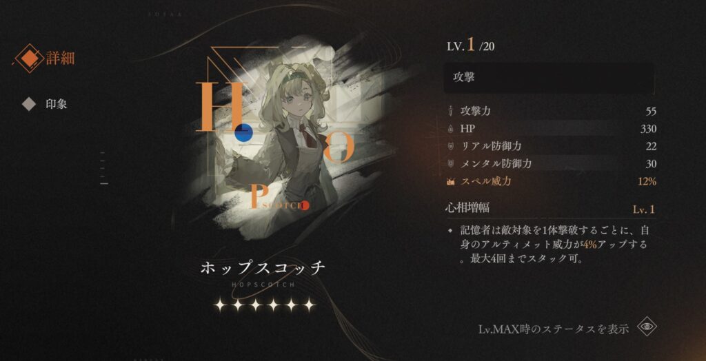 記憶者は敵対象を1体撃破するごとに、自身のアルティメット威力が4%アップする。最大4回までスタック可。