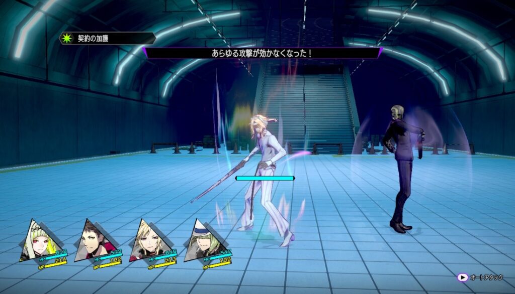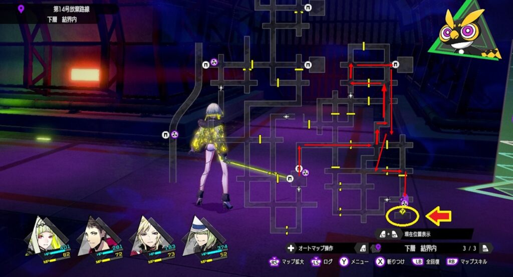 下層の結界内に降りると最初は同じ道を行ったり来たりするループになるが、イベント発生後に道にいる仲魔に話しかけると先への扉が見えるようになる。
