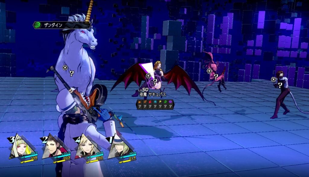 ディアラハンを使ってくるユニコーンから優先的に倒す。相性が吸収や耐性の物が多いので、単体火力スキルを使った方が効率的な気がします。ユニコーンを倒したらサキュバスかな。