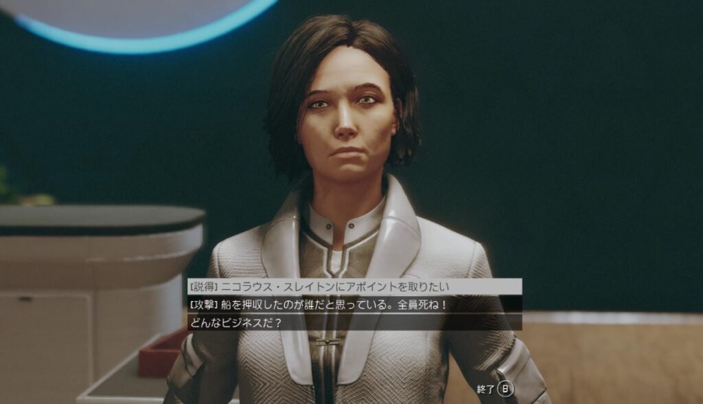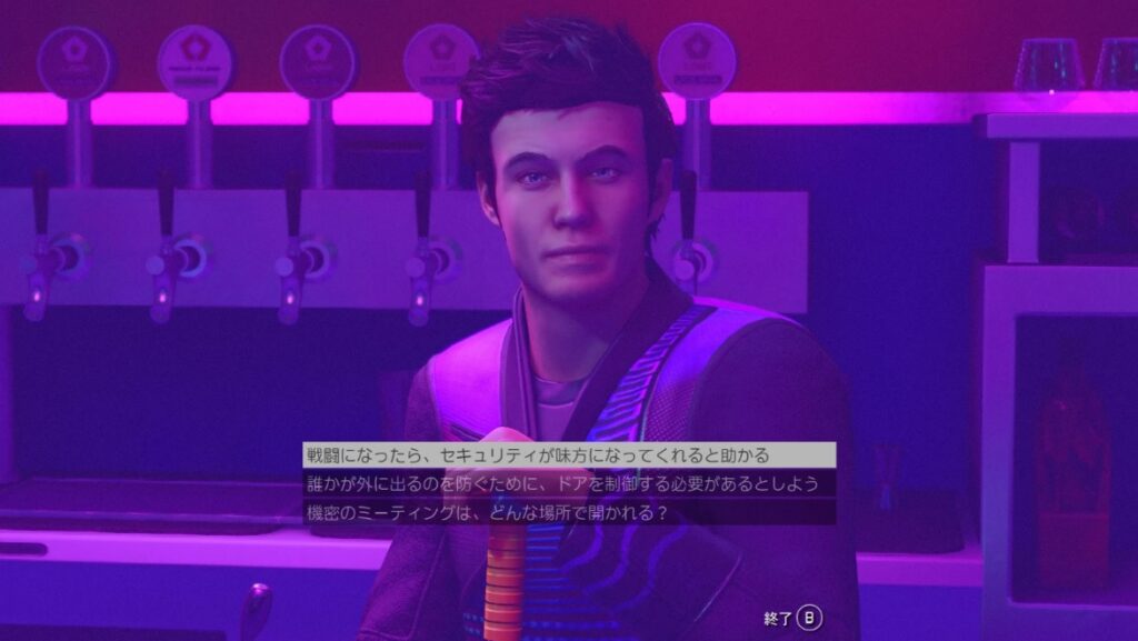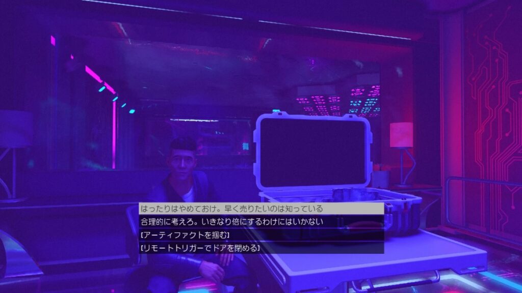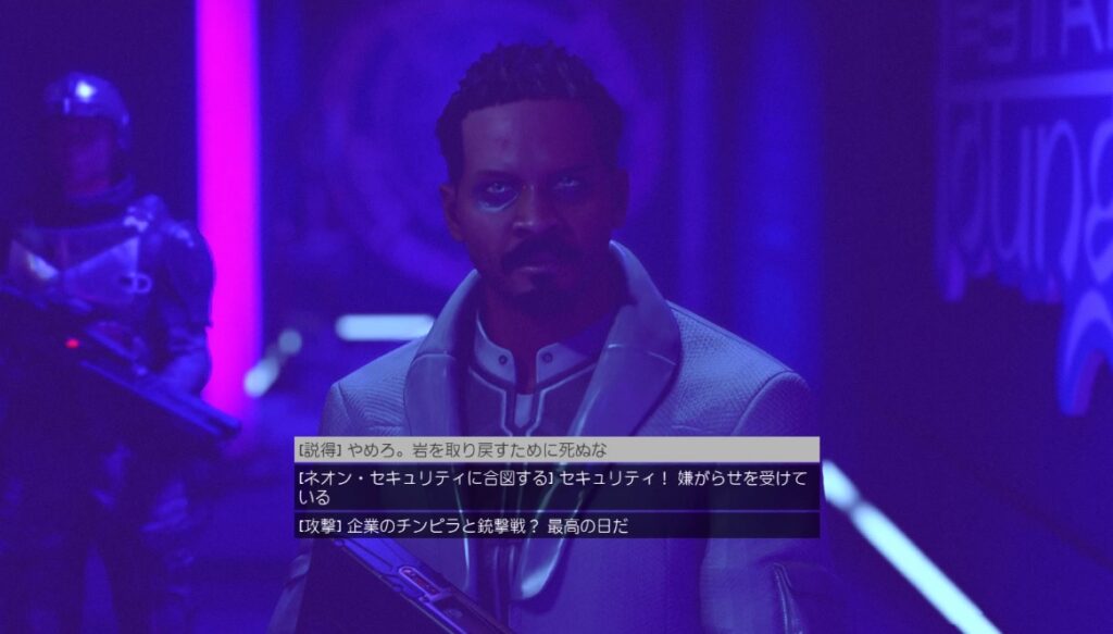 「説得」「ネオン・セキュリティに合図する」「攻撃」の3択。管理人は「ネオン・セキュリティ」を選択で戦闘はなし。
