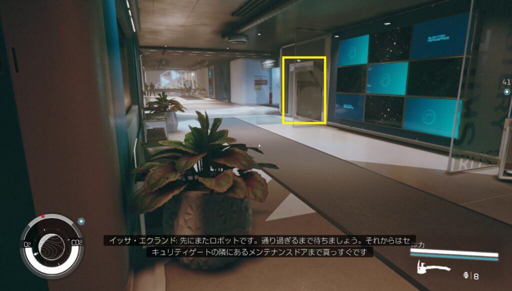 ロボットがいる場所の指示が分かりにくいですが、透明のパーテーションの横の扉を入れば見つからずに先に進めます。