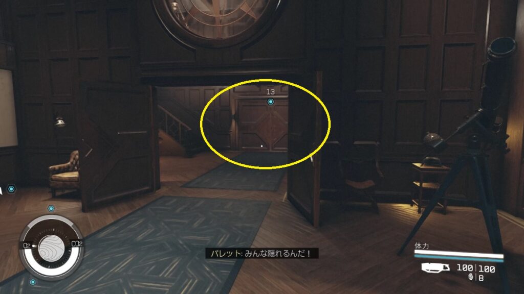 ハンターと戦っているとミッションが「ロッジから脱出する」に更新される。