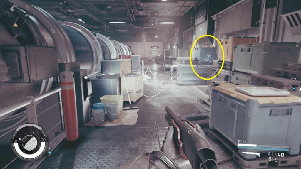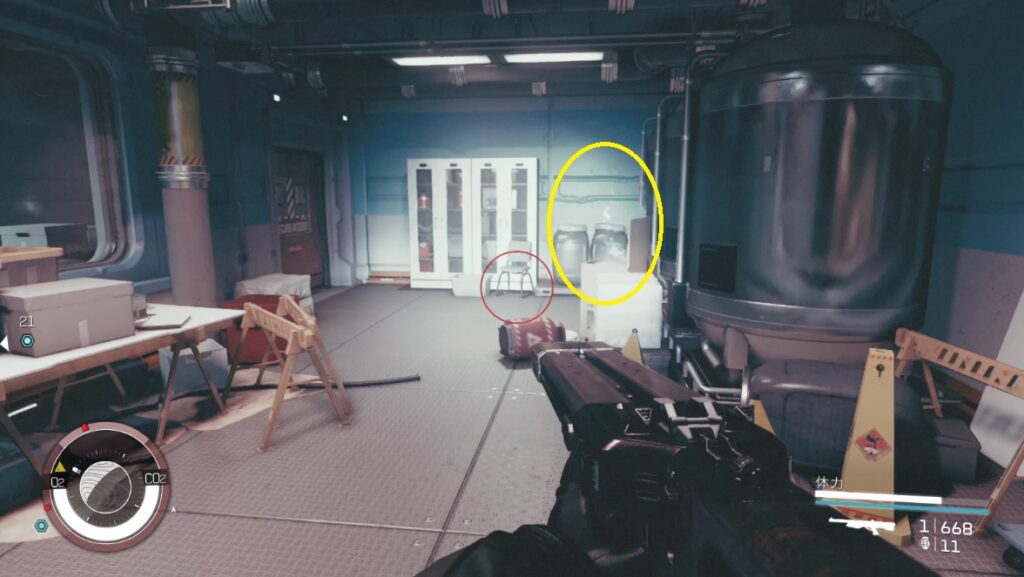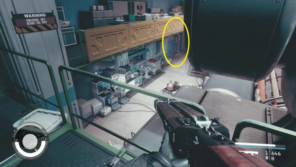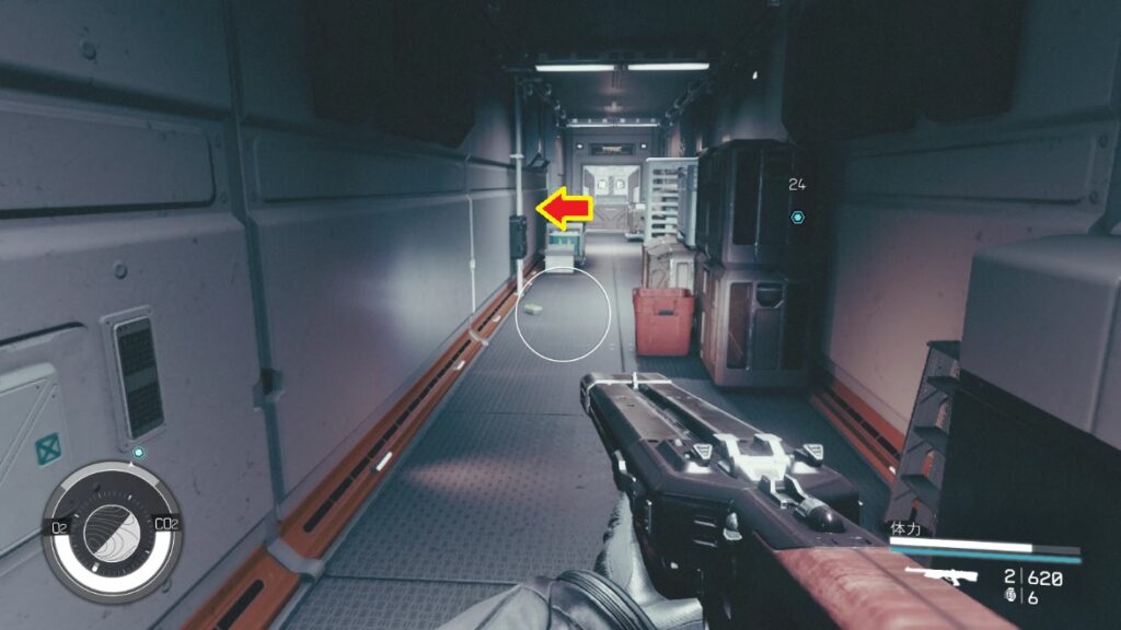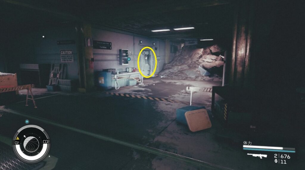 - コンピューター横の赤い扉が開放されるのでそこを通りマーカー方向へ進む