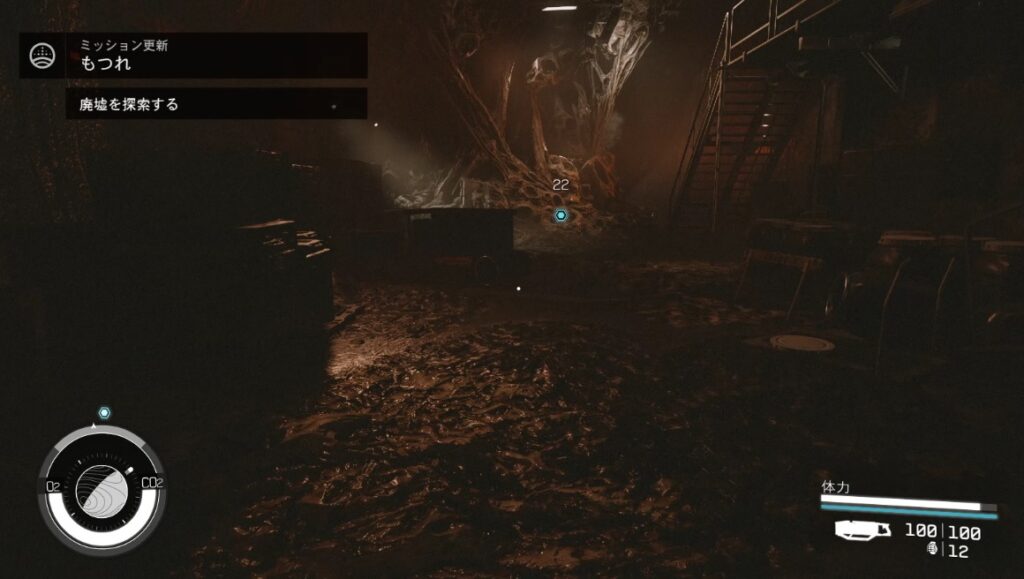 - 道なりに進み階段を降りた後の部屋でミッションが更新