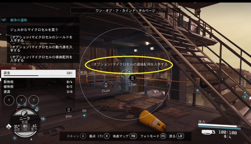 スキャン状態にしてマーカーへカーソルを向ければパーツの場所が表示される。パーツを集めるのはそこまで手間ではないので、自分で製作した方が節約になるのでオススメ。