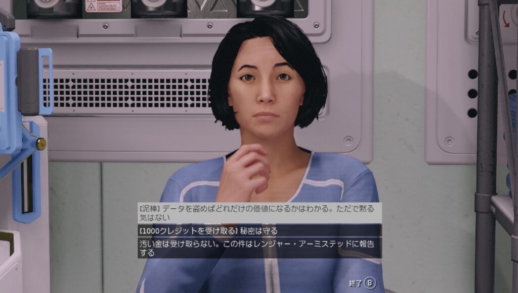 ジェーン・ナカモリの方は説得後に選択肢でクレジットが貰える。泥棒のスキルがあると最大4000クレジットとなる。好感度の増減もあるので気になる人は注意。