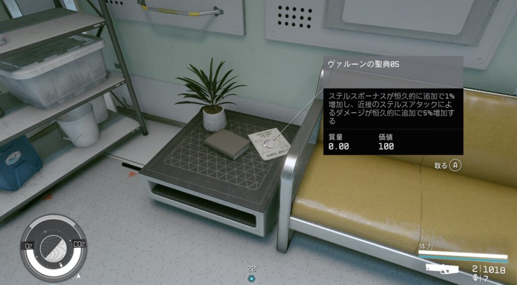 VIPエリアの椅子の横にヴァルーンの聖典05(スキル雑誌)。