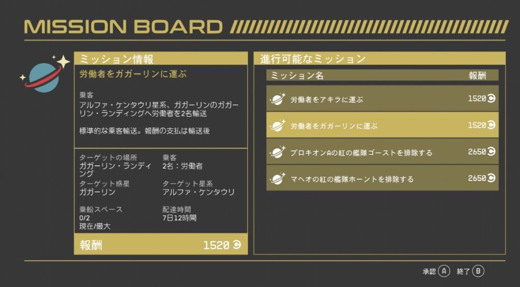 「○○の運ぶ」っていうのが乗客ミッション、「○○を排除する」ってのが賞金ミッション。端末から一つずつ受けてクリアする。