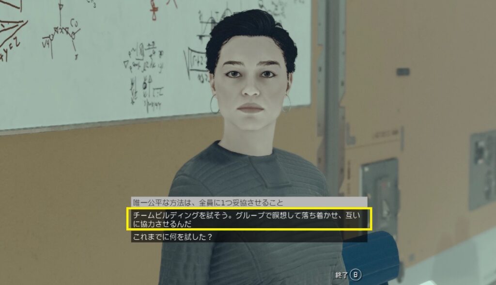 チームビルディングが始まったら選択肢は一番上を選び、最後まで終了させる。
