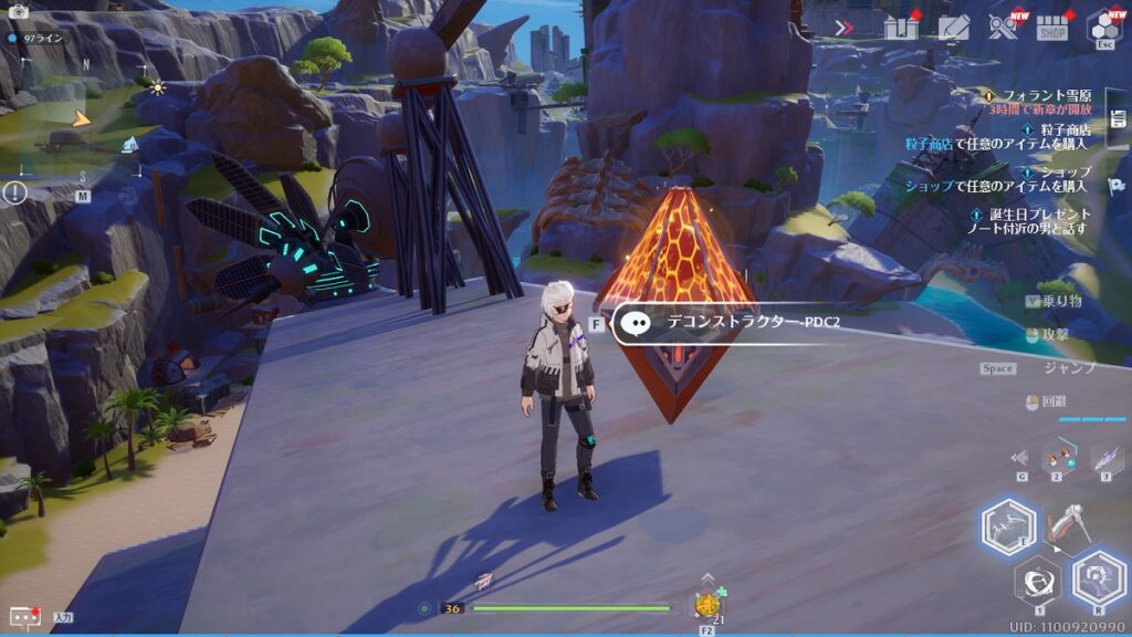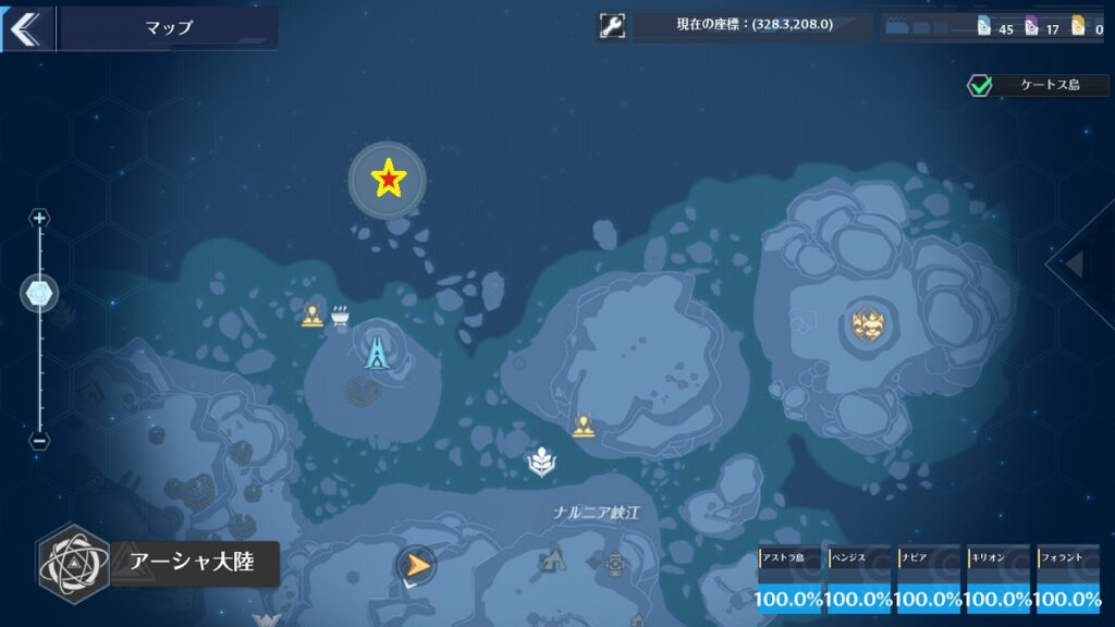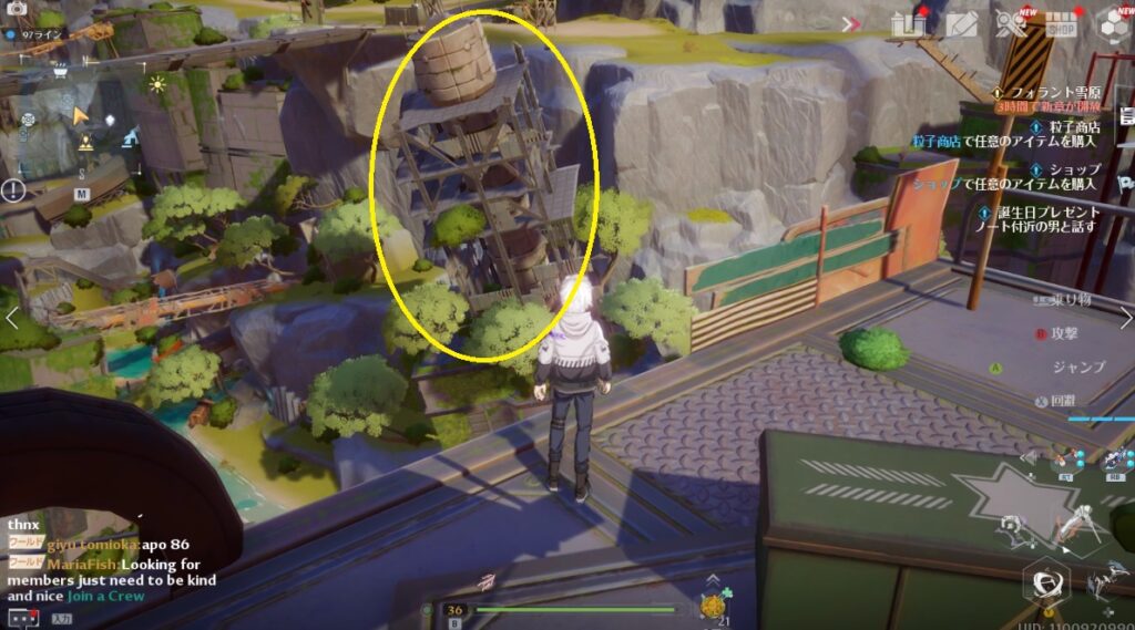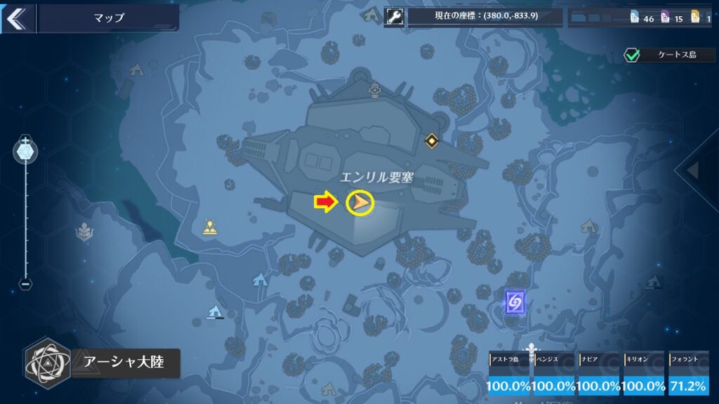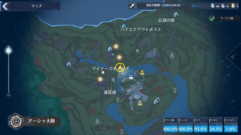 場所はマップ上だとわかりにくいですが、レインコール島[転送ゲート]の近くです。間は崖になっているので迂回して行きましょう。