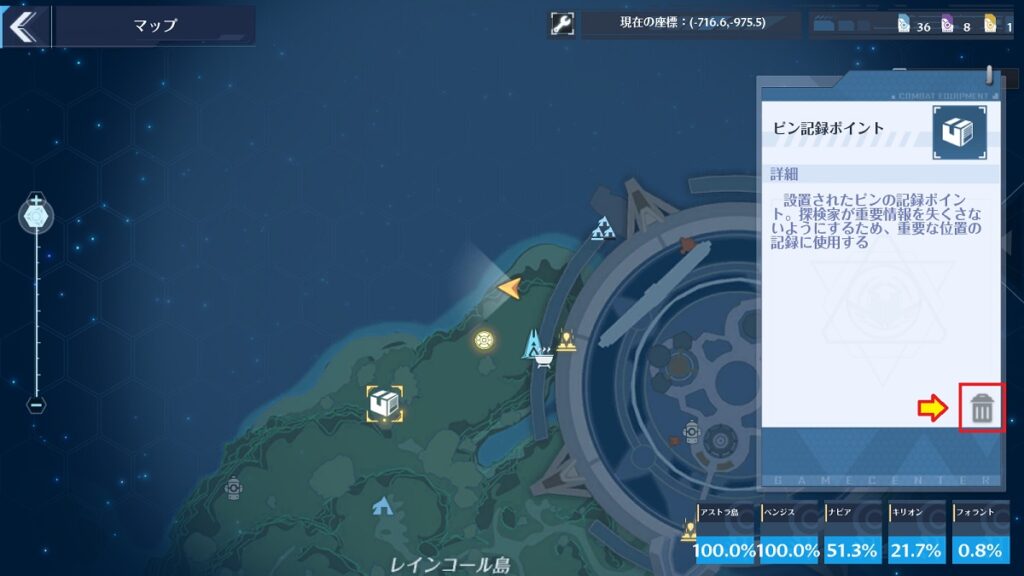 要らないものや間違えてしまったものは、ピンをクリックしてゴミ箱のマークから消去しましょう。