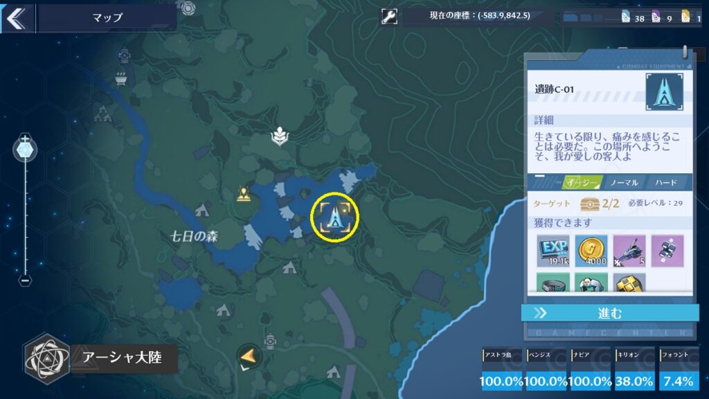 遺跡C-01の進め方・宝箱の場所などについてです。