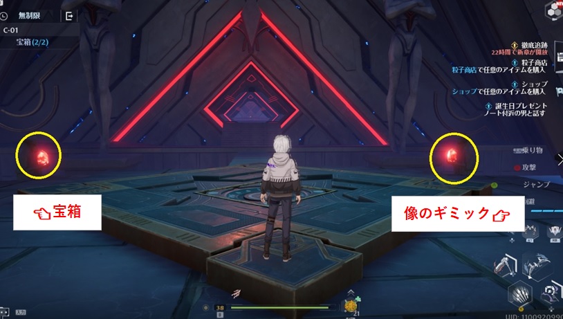 ジャンプのギミックがあるエリア。右側の像の裏に隠れている。