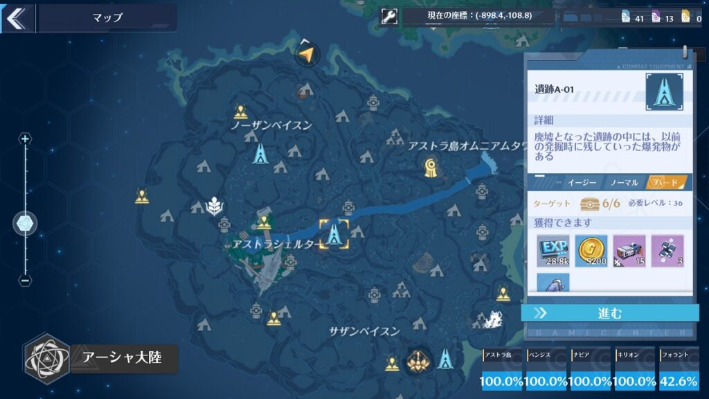 遺跡はソロで攻略する謎解き要素もあるコンテンツで、初回クリア時には経験値やサプレッサーのレベルアップに必要な素材などの報酬が用意されています。