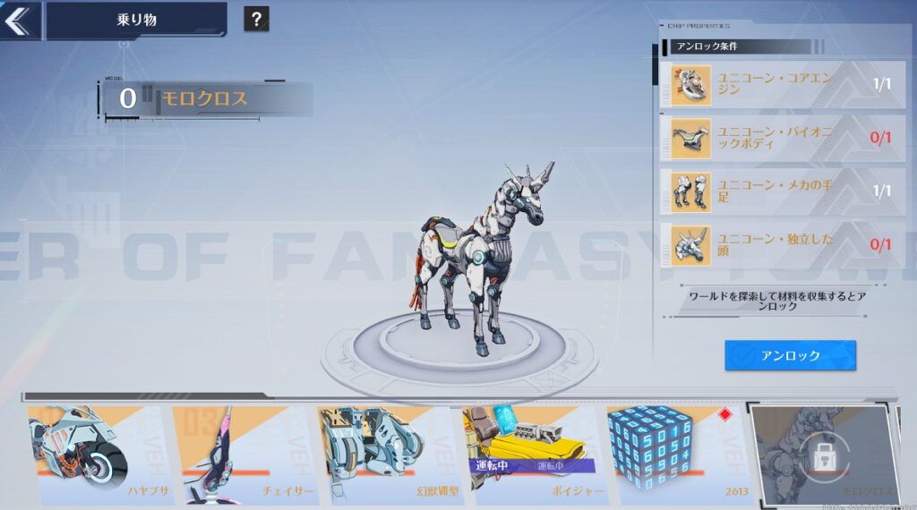 幻塔の自分の運の太さを試す乗り物シリーズ第四弾は【モロクロス】です。