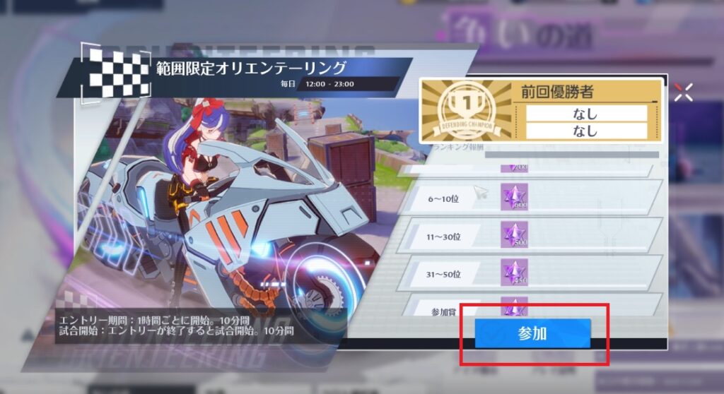 1時間ごとにレースが開始されるので連続で参戦できる仕様ではないみたい。各時間の0分にエントリー開始で10分からレースが開始かな。