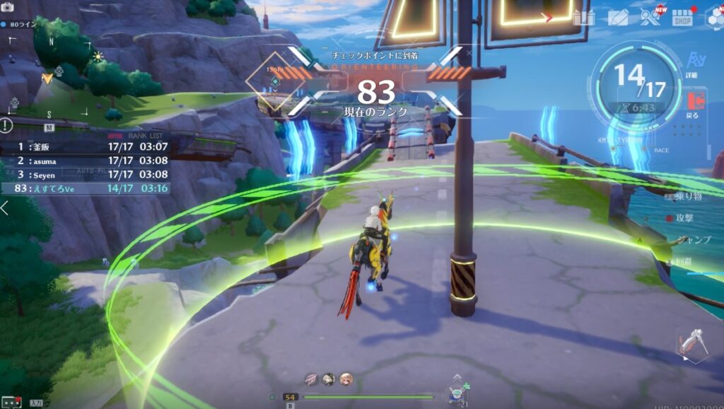 レースが始まったら乗り物でチェックポイントを駆け抜けるだけ。参加賞で星の欠片400個が貰えて、順位が高いほど欠片の個数が増える。1位は1200個なのでこれだけで1日の上限になる場合も!?