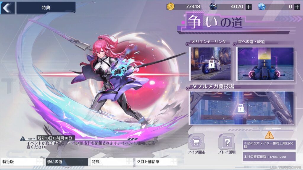 前回のイベントでもポイントの取得上限が決めてあったけど、これは今回も健在で【1日1200個】。イベントのスターゲートを毎日4回やれば上限になります。