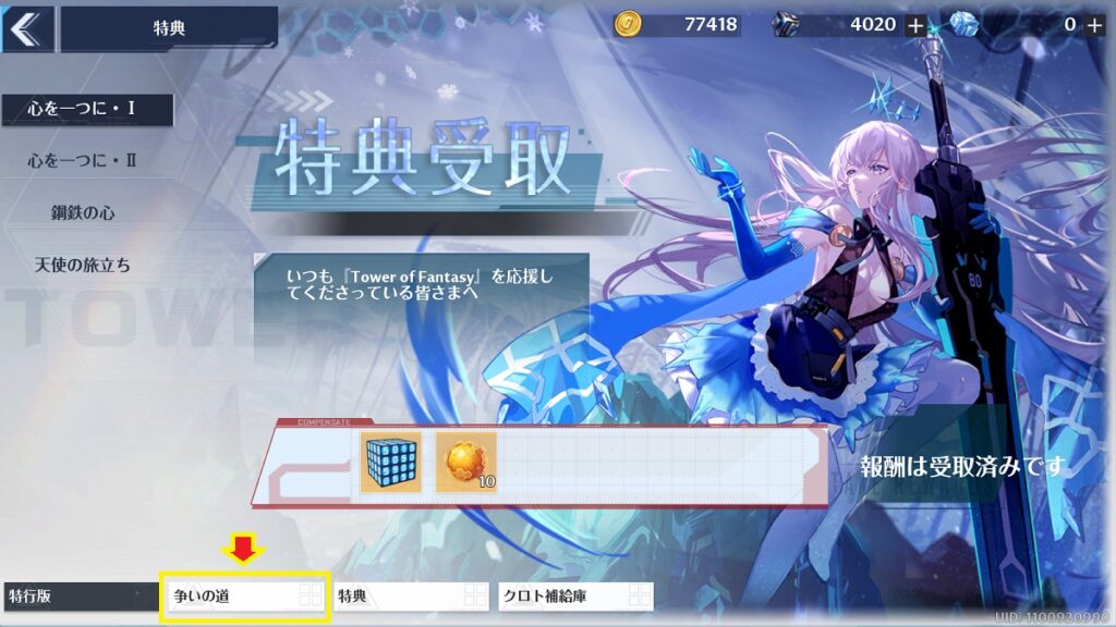 - メインストーリー「エコロジカルステーション侵入者」をクリアし、「特典」画面を解放