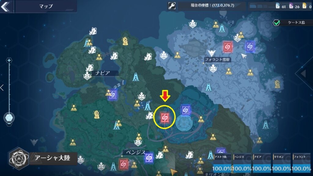 マップに赤色で表示されたスターゲートがイベント用