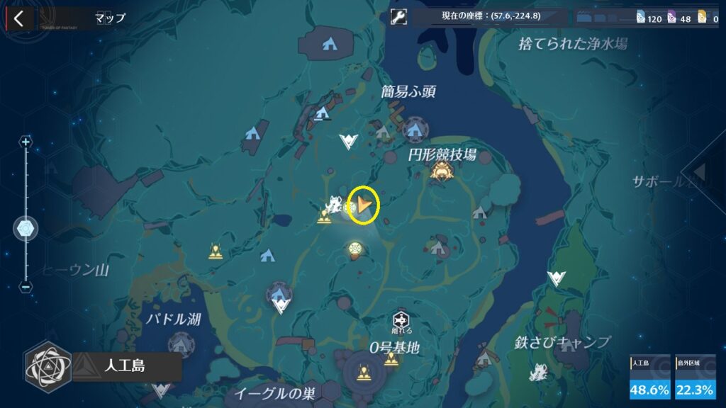 座標は「57.6、224.8」の近辺です。