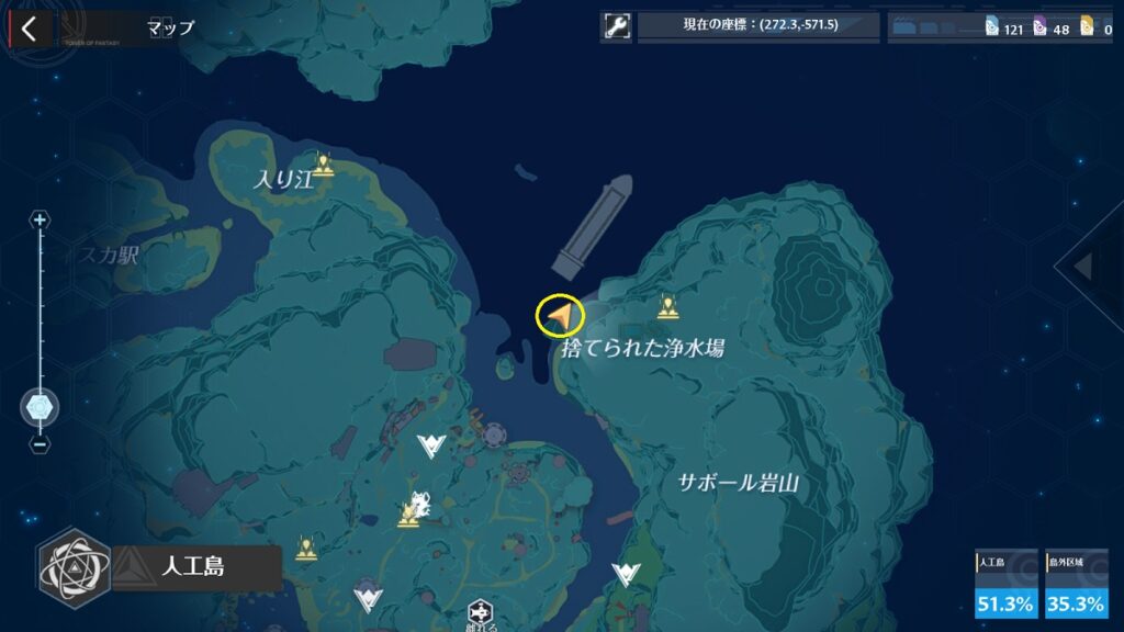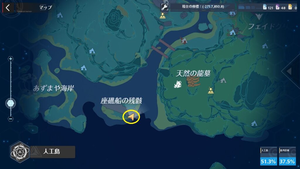 座標は「-271.7、810.8」の近辺です。