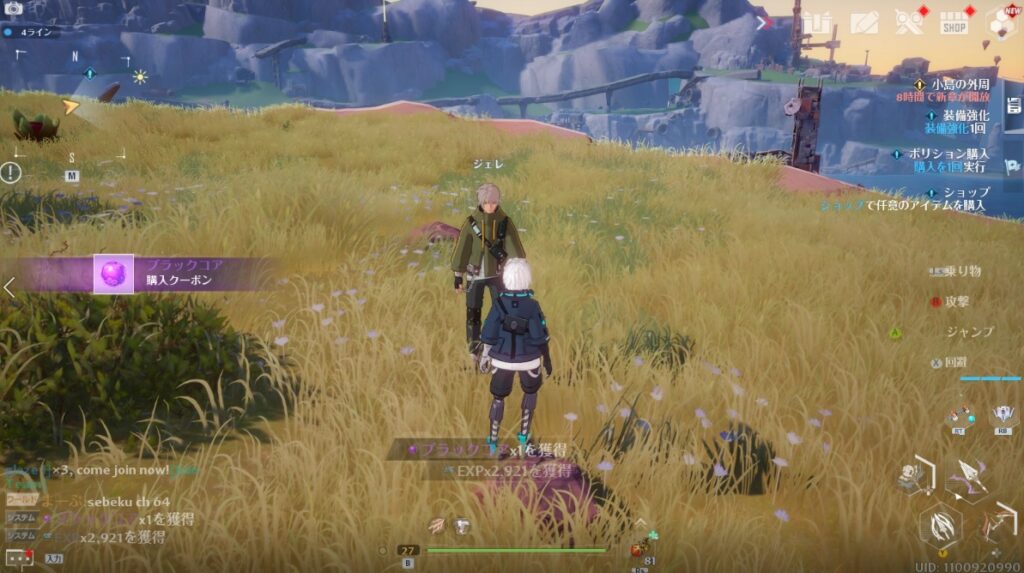 着いて行った先にはジェレ(NPC)がいて経験値とブラックコアが貰えました。会話の内容から察するに今後も各地で見られるような気がします。