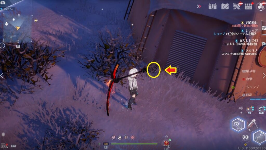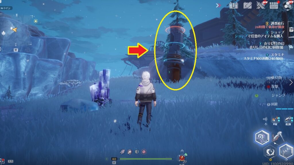 もう一つの場所はゴールドラッシュ山のハリムがいるところです。背後に青く光る装置が見えると思います。
