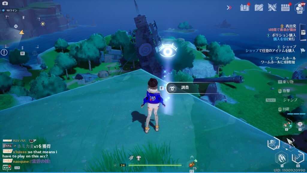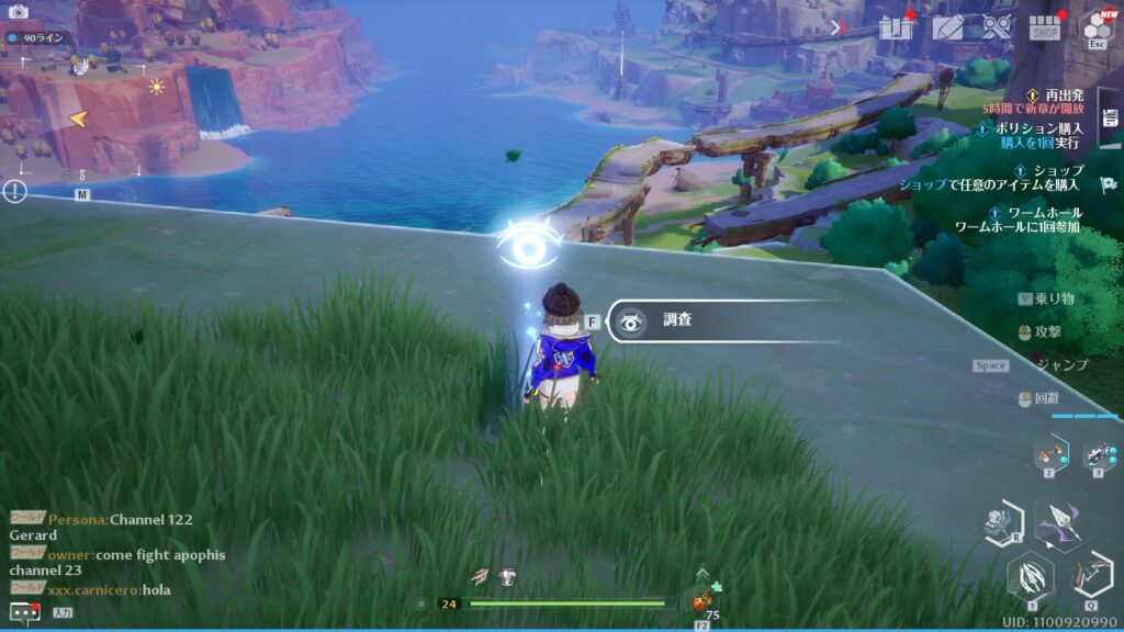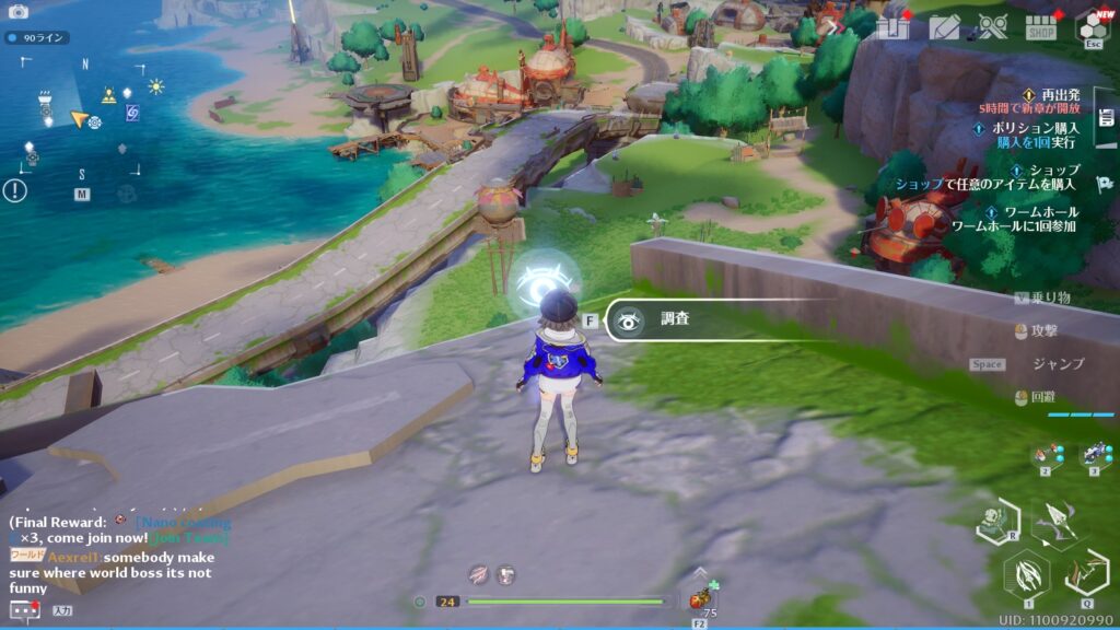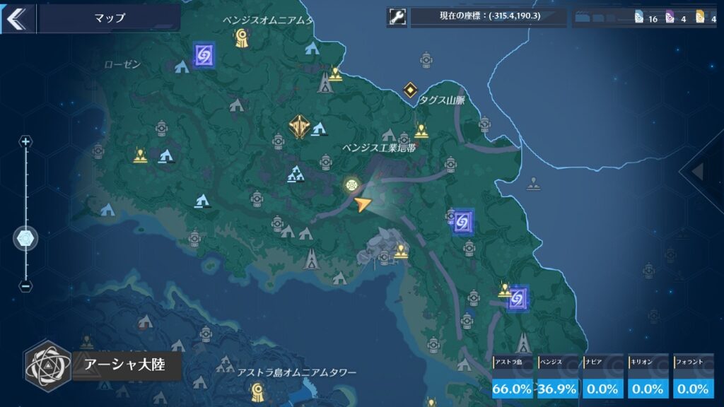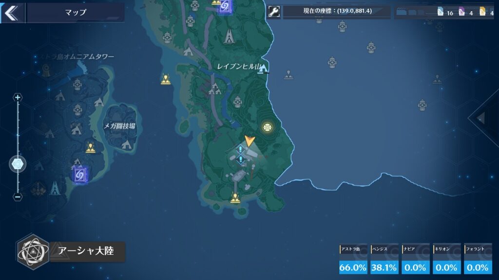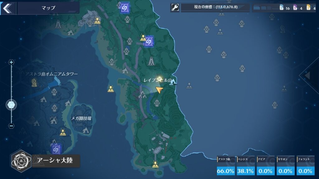 ワールドマップを開いて右下にあるエリア名をタップすると、現在の探索値が表示されます。その中で【景勝スポット】と表示されているのが【風物】です。