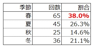 「秋」の割合も減ってますしね