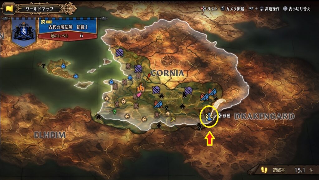 最初に訪れることになるであろう魔法陣はコルニアの南東方面です。