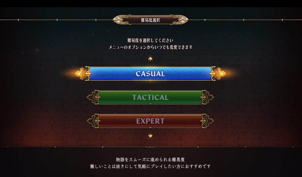 本作では3段階でゲーム難易度を決めてプレイができます。体験版の範囲ではありますがざっくりと違いやメリット・デメリットを調べてみましたので気になっている方は参考にしてみてください。