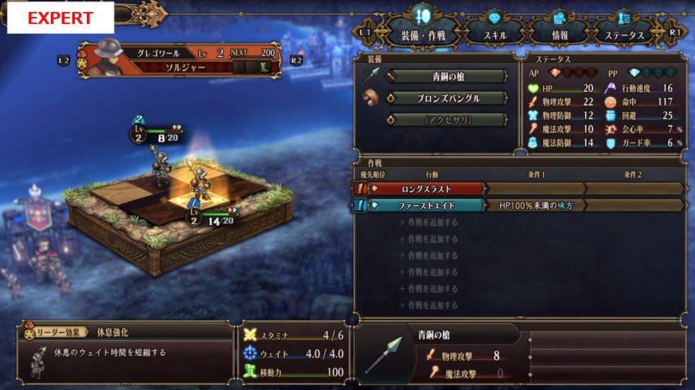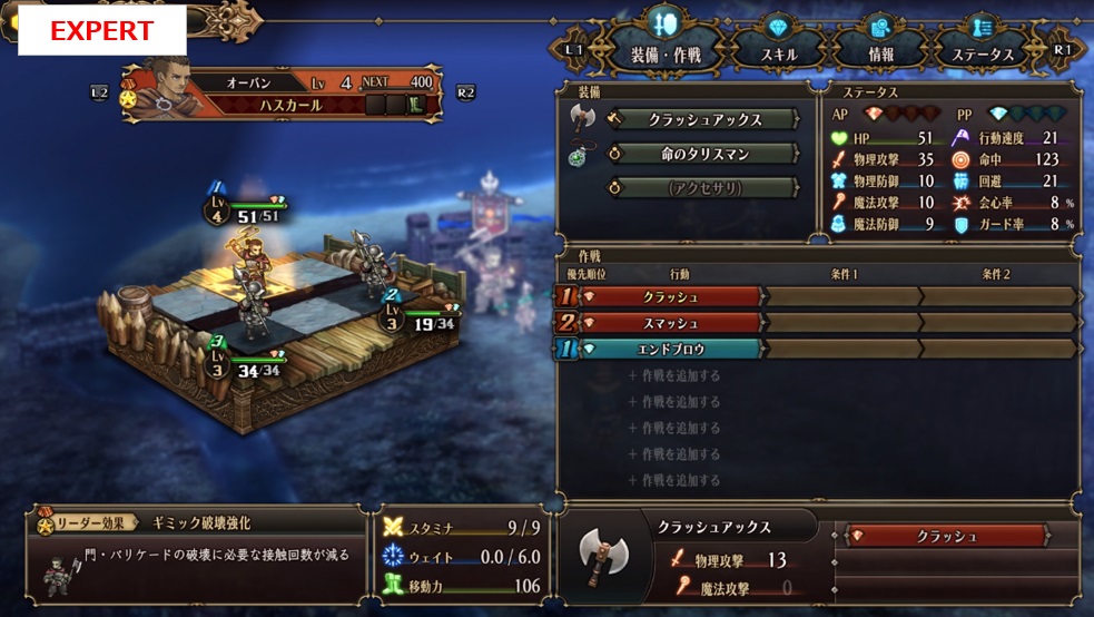 名前・クラス・レベルは一緒ですがステータスが異なり、EXPERTはHP・攻撃・防御の数値がアップしています。なので、1回の戦闘で倒せない場合があり戦闘回数が多くなります。