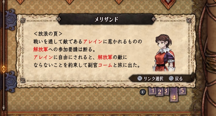 仲間にしないってのは特にメリットないんですが、アーカイブに【放浪の頁】というのが追加されます。アーカイブを埋めたい人はステージ前でセーブしておいて解放しておくといいと思う。