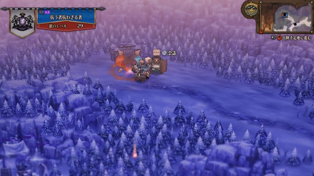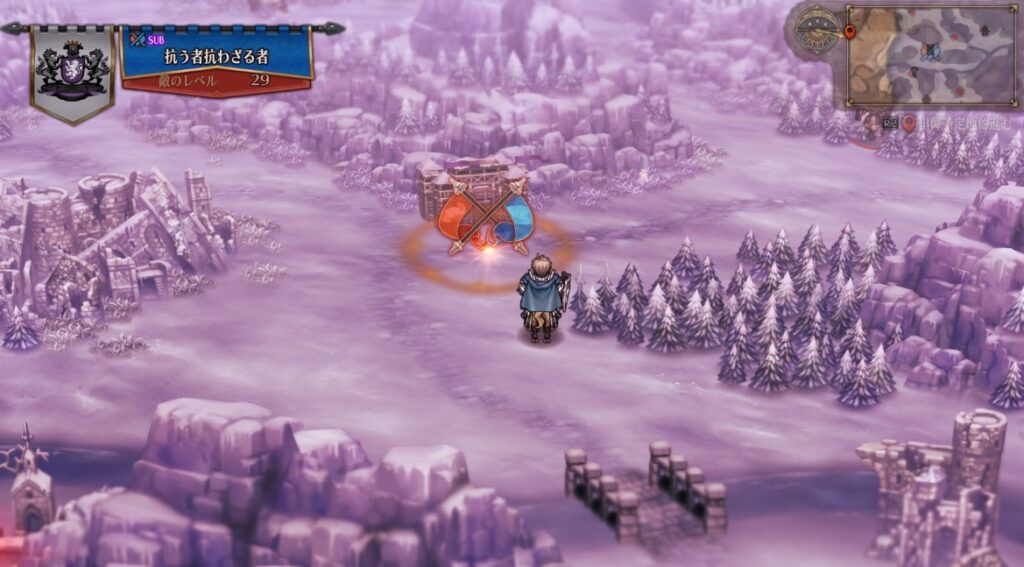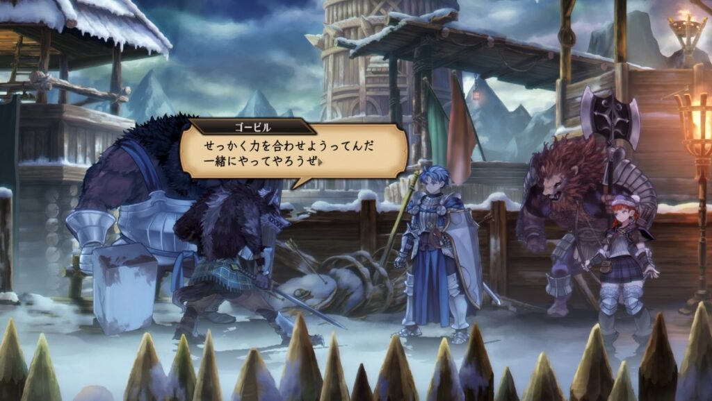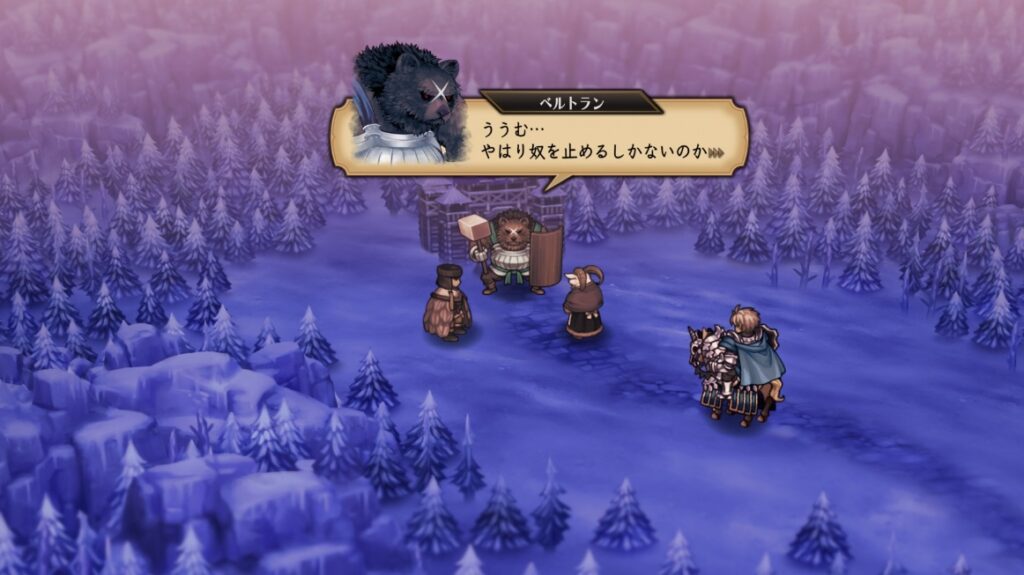 この中間に発生したステージを進めクリアするのがベルトランとゴービルの両名を仲間にするルートです。最初に発生するステージでクリアしてしまうと片方しか仲間にできないので、両名を仲間にしたい場合はどちらとも会話をし中央のステージをクリアする必要があります。
