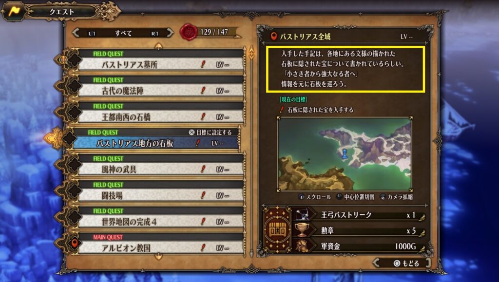 色褪せた手記2を入手すると発生するクエスト「バストリアス地方の石版」の攻略詳細です。