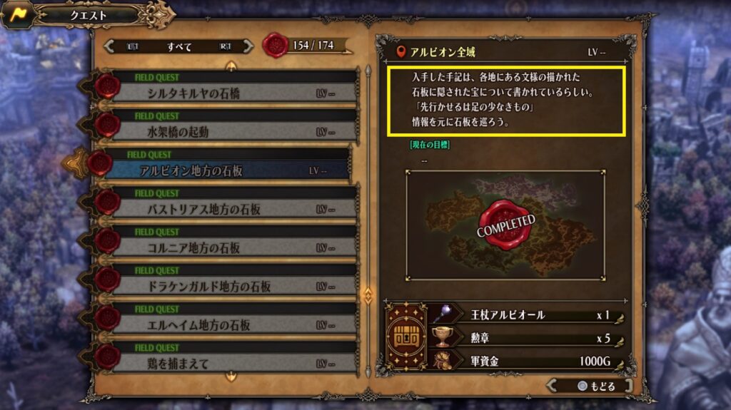 これは他のエリアにもあった石版を巡るクエストで、アルビオンでは王杖アルビオールが獲得できます。石版の場所と順序をまとめましたので疑問点がある方は参考にしてください。