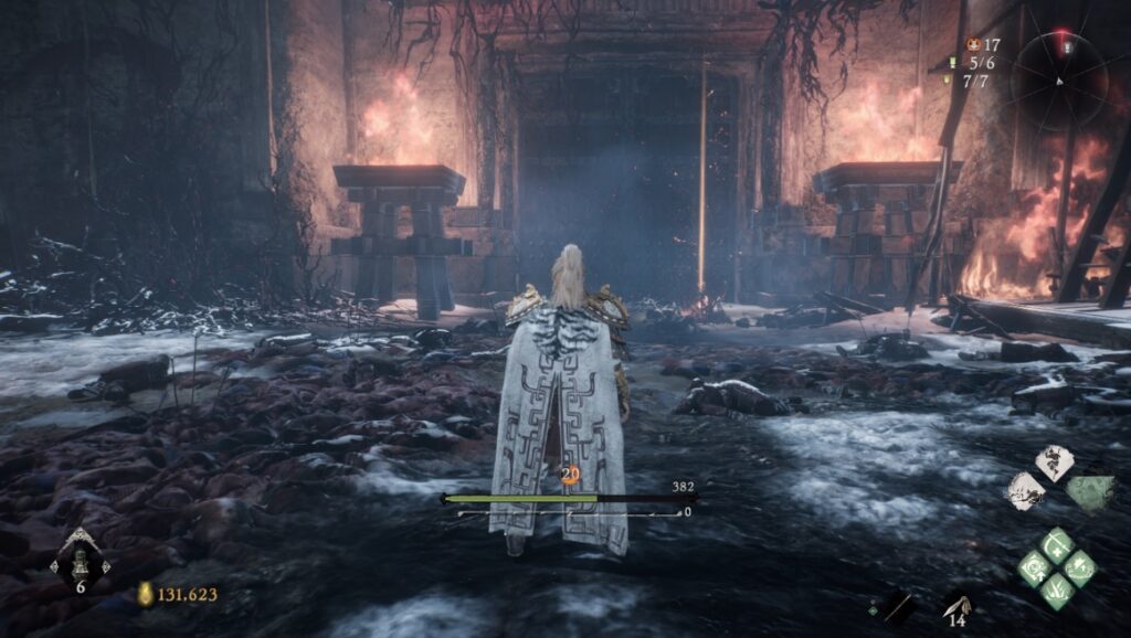 門の上層部へ登り食鉄獣がいる建物の上階部分