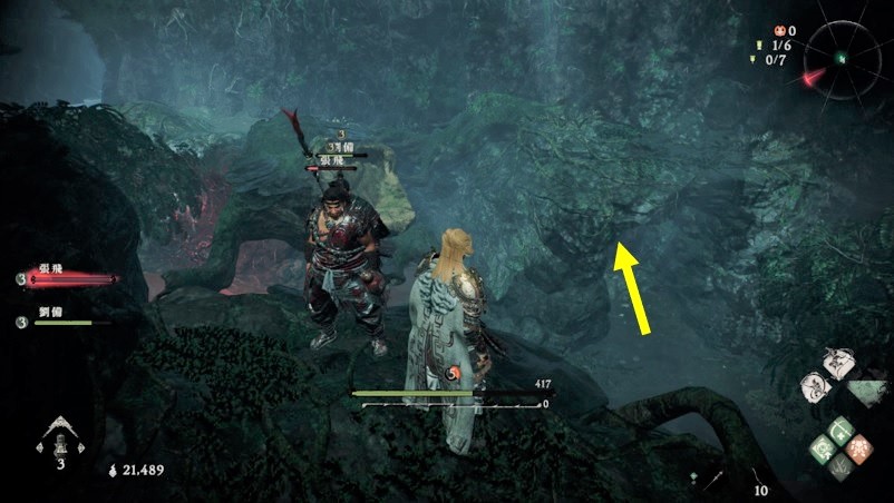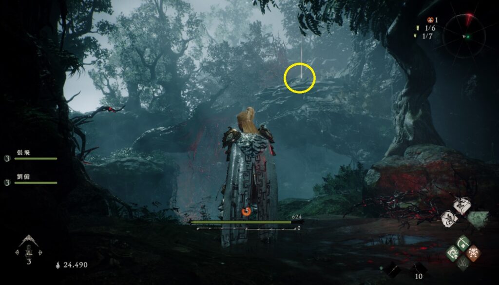 同じエリアで木を伝って崖の上に登ると標旗