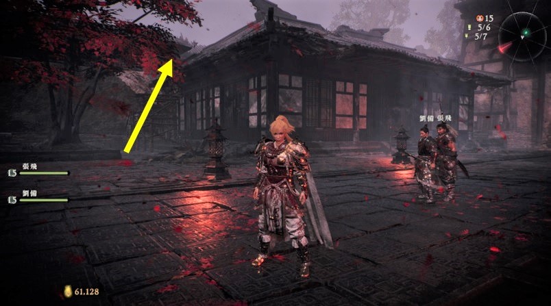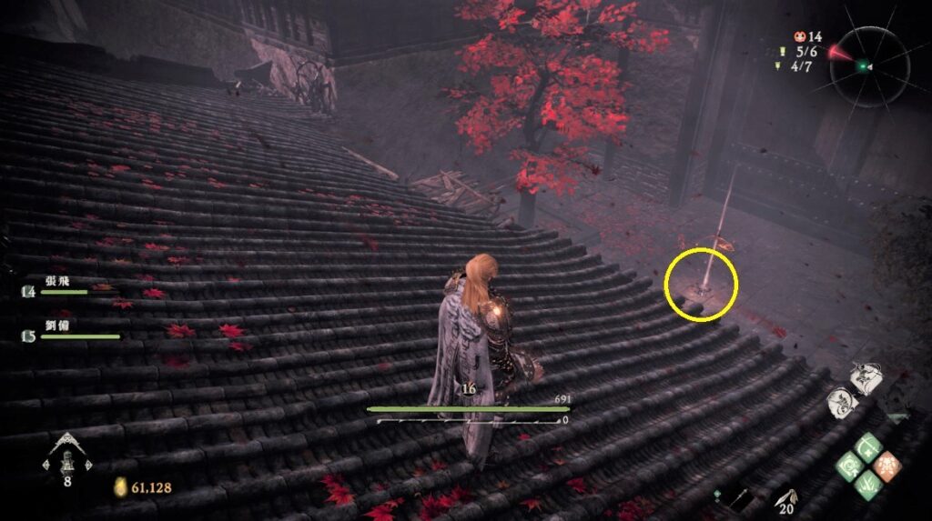 軍旗④の近くにある屋根に登り奥へ降りると標旗⑤