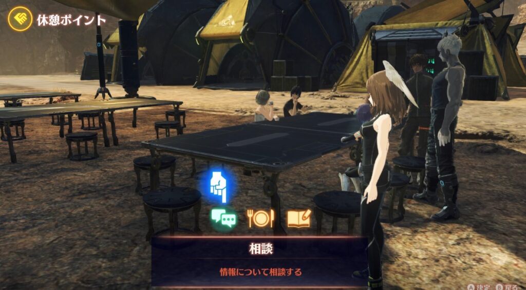 情報を集め終わったら休息ポイントで「相談」をする。この結果によって、報酬が手に入ったりクエストが発生したりする。これが情報を集めてから報酬獲得までの流れ。
